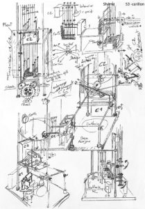 Machine à rythmes. Pièce 53c. Cuivre, fer, bois. Structure laiton.